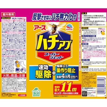 速効性、致死効果に優れた有効成分を配合。ハチの巣や飛び回るハチ・アブを速効駆除。