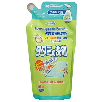 よもぎ、どくだみなどの植物抽出エキスが、アレルギーの原因のひとつである不快害虫を寄せつけず、産卵・ふ化の抑制効果も発揮します。効果は約3ヵ月持続します。 植物抽出エキスによる抗菌・消臭効果もあります。 手と環境にやさしい生分解性の植物系界面活性剤を使用しています。 スプレーして拭き取るだけで汚れがすっきり取れます。 人と環境に有害な化学物質は使用していません。