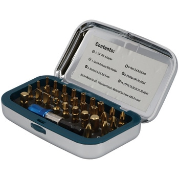 チタンコーティングにより耐久性を向上させたビットセット。