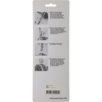 幅3/8''もしくは1/4''のブーツバンドを締めつけ、切断ができます。