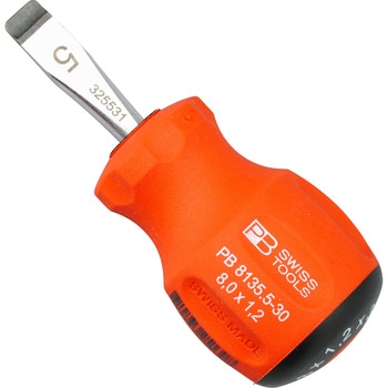 スイスグリップはポリプロピレン・サントプレンの2種の新素材からなるハンドルです。ハンドル後部にはドライバーの先端形状のシンボルマークとサイズを表示していますので、作業に適したドライバーをすぐに選ぶことができます。特殊な表面構造により、濡れた手で握っても滑りにくく、さらにオイル・ガソリンに耐性があり、汚れてもきれいに落とせます。