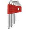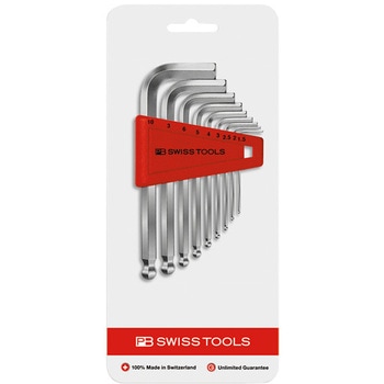 ニッケルクロームメッキされており、耐錆性と長寿命を可能にしています。エッジは軽く隅取りしてあり、レンチをたやすくネジ穴に差し込むことができます。レンチには5桁の生産番号が記されており、この番号で原料段階の製造過程まで遡ることができます。硬度はHRC59と大変高く、しかも強靭に作られているので、耐摩擦性、持久性に優れ、高トルクをかけることができます。精密に作られたボールポイントで角度のついたところのネジを回すことが可能です。(斜め30°の角度までOK)ホルダー付。