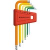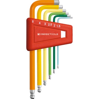 PBレインボーレンチはそれぞれのカラーにより使用寸法を一目で判別できるようにしました。また、特殊パウダーコートにより、耐錆性があります。エッジは軽く隅取りしてあり、レンチをたやすくネジ穴に差し込むことができます。レンチには5桁の生産番号が記されており、この番号で原料段階の製造過程まで遡ることができます。硬度はHRC59と大変高く、しかも強靭に作られているので、耐摩擦性、持久性に優れ、高トルクをかけることができます。精密に作られたボールポイントで角度のついたところのネジを回すことが可能です。(斜め30°の角度までOK)ホルダー付。