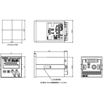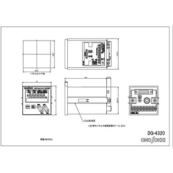 付属品取扱説明書、パネル取り付け金具、端子台カバー質量(g)約320使用温度範囲(℃)0~40外形寸法(mm)72(W)×72(H)×114(D)電源AC100~240V電源電圧AC100~240V(50/60Hz) 6VA以下(AC100V時)表示LCD表示 セグメント、ドットマトリクス複合表示 2色バックライト付き 6桁表示表示方式LCD表示 セグメント、ドットマトリクス複合表示 2色バックライト 6桁表示分解能(μm)0.5、1、10から選択(入力センサーとしてエンコーダー選択時、単位は表示されません)センサ用電源DC5V 200mA 、DC12V 150mA(オプション DG-0430装着時)機能(演算)オフセット機能、逓倍切り替え機能、小数点位置変更機能、係数補正機能/(パネルコンディションメモリ)設定パラメーターをデジタルゲージカウンター内部に保存(4条件)入力信号2相位相差矩形波、1相矩形波 (内部設定切り替えで対応)デジタル出力BCD出力 更新時間 10ms オープンコレクター出力(正負論理切り替え可能)表示範囲0~±199999(0.5μm分解能選択時、1桁目は0または5のみを表示します)入力周波数(Hz)DC~300k保存温度範囲(℃)-10~55数値表示瞬時値、Max値、Min値、Max値-Min値(RANGE値)内容量1台
