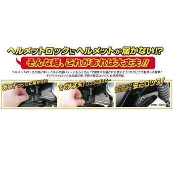 ヘルメットロックにヘルメットが届かない!?そんな時、これがあれば大丈夫!!ヘルメットロックに掛け辛い、ベルトの短いヘルメットもらくちん!!2個掛ける場合にも使えそう!キジマ製ヘルメットロックは勿論、平型の純正ヘルメットロックにも使用可能です。※SHOEIヘルメットに採用されているラチェット式のチンストラップにはご使用できません。