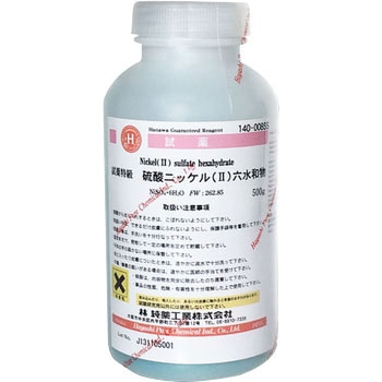名称硫酸ニッケル(II)六水和物化学式NiSO4・6H2O化学組成NiSO4・6H2O労働安全衛生法の表示労特-2,57,57-2保管環境冷蔵危険物の類別非危険物特性飲み込むと有毒、アレルギー性皮膚反応を起こすおそれ、吸入するとアレルギー、ぜん(喘)息又は呼吸困難を起こすおそれ、発がんのおそれ、長期にわたる、又は反復ばく露による臓器の障害 (呼吸器系)、長期にわたる、又は反復ばく露による臓器の障害のおそれ (肝臓、精巣)平均分子量262.85PRTR法第1種特定第1CAS登録番号10101-97-0内容量1本(500g)