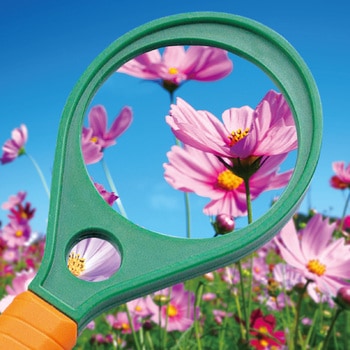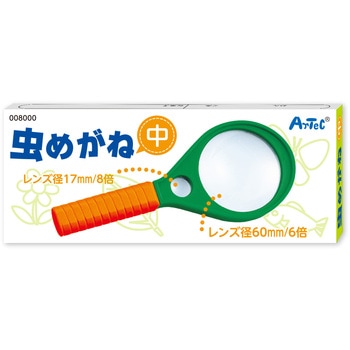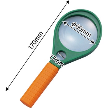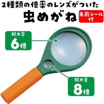 6倍・8倍ふたつのレンズが一体化材質:ABS,アクリル。サイズ:レンズ:Φ60mm、全長:170mm。セット内容:名前シール付、部分拡大鏡(Φ17mm)付