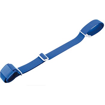 適度に伸縮するバンド。支柱にバックル部を、手首・足首にリスト部を装着。ベッド上や椅子に座ったままで使える簡単なトレーニング用具。
