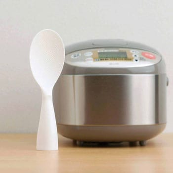 持ち手がスタンドになる自立式しゃもじ。立てて置けるから衛生的。表面に細かい凸凹があるダブルエンボス加工でご飯がくっつきにくい。すくう部分はスプーン形状で、ご飯を優しく盛る事が出来ます。