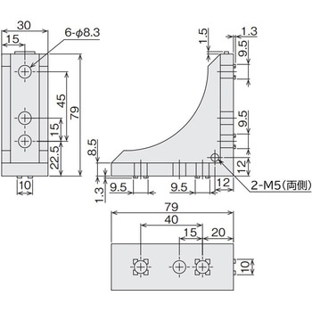 DブラケットLWタップ付×1、六角穴付ボルトM8×20(3価クロムメッキ)×4、TナットL(M8)×4