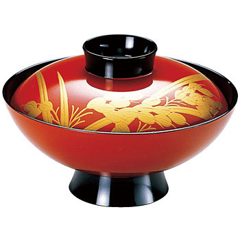小槌吸物椀 朱稲穂内黒 M