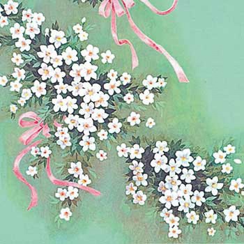 カスミ草とリボンをアレンジした柄の包装紙です。贈答用など幅広くお使い頂けます。