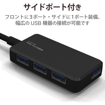 フロントの3ポートに加え、サイドに1ポートを装備し、幅広のUSB機器を接続するのに便利です。