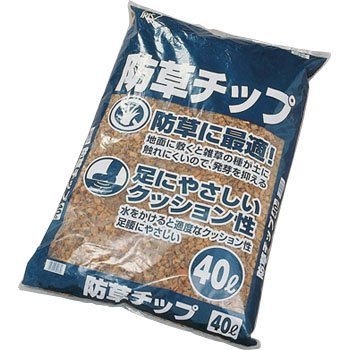地面に敷くと雑草の種が土に触れにくいので、発芽を抑える効果のある防草チップです。水をかけると足腰に優しいクッション効果があります。