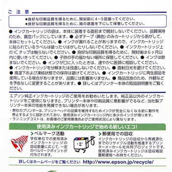 いつもエコインクカートリッジを購入しているのですが、正常に印刷できない場合がありました。その為、今回純正のインクカートリッジを購入にいたりました。現在使用していますが、問題なくプリントアウト出来ています。ありがとうございました。