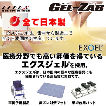 EXGEL(エクスジェル)の高い衝撃吸収性により、長時間乗車の疲労を軽減します。疲労軽減により、「もっと遠くへ」を可能にするゲル内臓座布団ゲルザブ。脱着は簡単です。表皮の改良により滑りにくくなりました。
