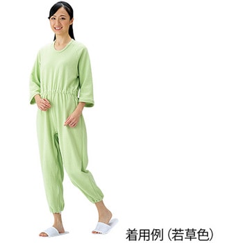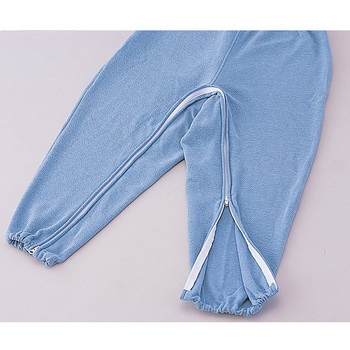 おむつはずしを防止するつなぎタイプです。背中と股部の2ヶ所にファスナーがついていますので着替えが楽です。年間を通じて着用できます。