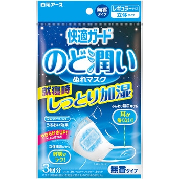 ウェットフィルターがマスクの内側を加湿状態にし、のどをうるおします。就寝時ののどの乾燥対策に。無香タイプ。