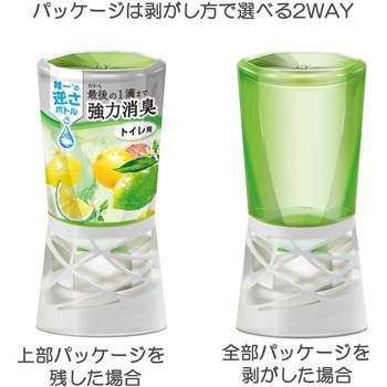 「逆さボトル」だから最後の1滴まで強力消臭。液残りゼロで消臭し続けるトイレ用置き型消臭剤です。