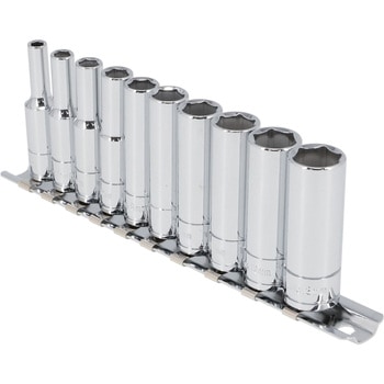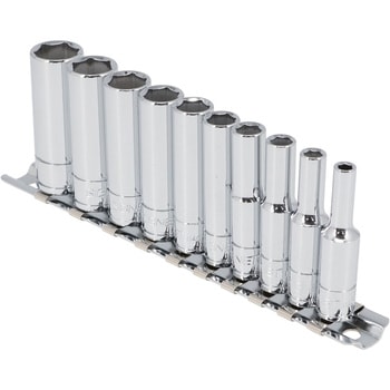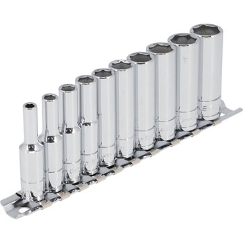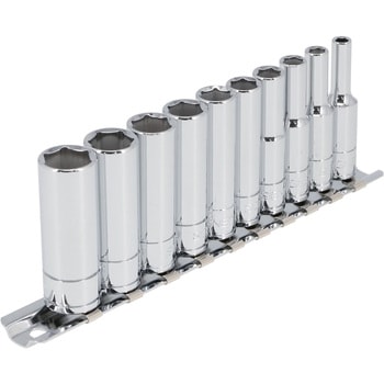 ミラー仕上げのメッキが美しいディープソケットセット。