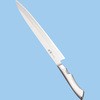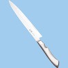 高い信頼性と実績をもった大同特殊鋼ハイカーボンステンレスIK-6材(クローム・モリブデン・バナジュムを含有した特殊鋼)と熟練した職人の技術によって作り出されたプロの為の高級庖丁です。又、裏スキ(刃の裏側のくぼみ)により砥石の当たりがよく刃付けが容易に出来ます。