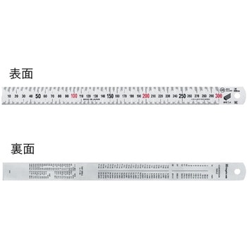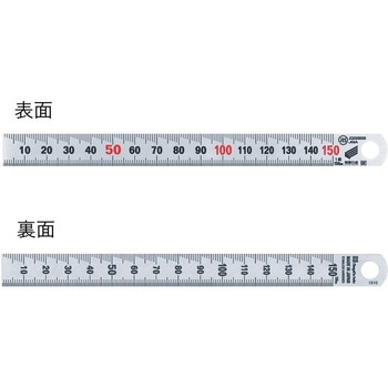 読みやすい段差型目盛。シルバー仕上で表面の反射を押さえ目盛を読みやすい仕様になっています。150~1000mm:上段1mm目盛、下段0.5mm目盛。1500、2000mm:上段1mm目盛、下段1mm目盛。表裏目盛りはSV-150KDのみ。