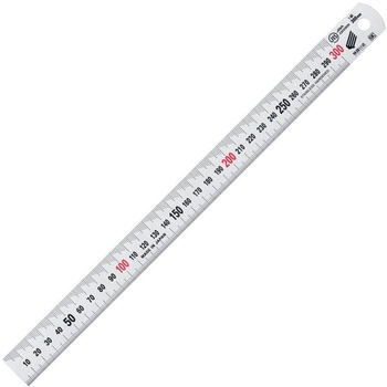 目が衰えていく中で、快段の見やすさは顕らかで、他の寸法のものも順次買い替えています。0.5mm有/無の目盛ですが、裏では逆の割り付けした方が良いと思います。0.5がない目盛で読みたい場合、裏返せば実現できます。同メーカー様の30cmものの裏には換算表がついていますが、このやり方の目盛がついていれば換算表より価値があると思います。