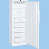 冷凍パン生地、中華食材などの分別保存、給食の検食保存にも最適な多目的フリーザー。-30℃新型警報システム装備/30秒以上のドア開放時、または庫内温度上昇の際、異常をランプとブザーで報知。各棚ごとに強化プラスチック製の引き出し式収納庫を装備。コントロールパネルに温度計を装備(デジタル式)。設置場所をとらないスリムでコンパクトな設計。