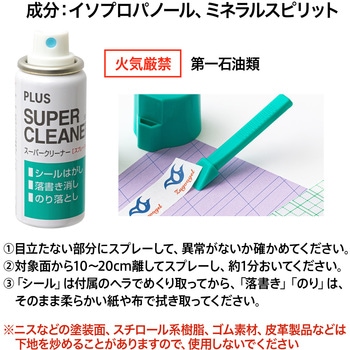 「シールはがし」粘着テープ・ラベル・値札剥がしに、「落書き消し」油性マジック・クレヨン落としに、「のり落とし」粘着剤・スプレーのり落としに使える、3役タイプのスーパークリーナー。