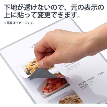 修正の場合、貼り替えではなく上から貼るだけなので、作業の軽減になります。表示の一部を変更したい場合に、全体を作り直さず部分のみの修正にご利用頂ければ、省資源にもつながります。