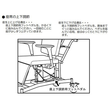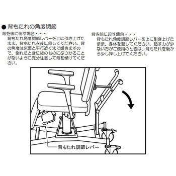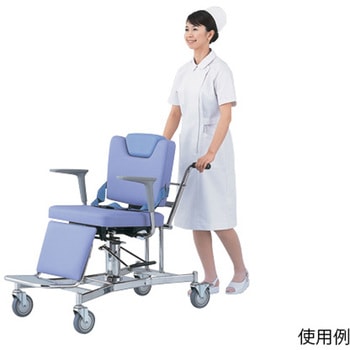背板の動きに連動し傾斜しますので洗髪の際に邪魔になりません。シートのリクライニング(水平角25~80°)に連動しフットレスト・足置き台が動きます。転落予防にシートベルトを装備しています。左右のアームレストは後ろに倒すことができます。
