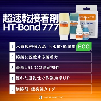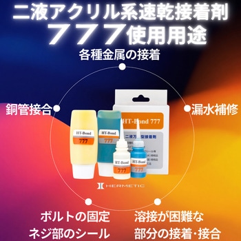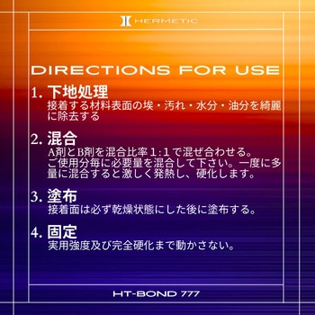 A剤・B剤からなる二液型の万能接着剤です。有機溶剤や低沸点モノマーのような揮発性成分を含有せず、低臭気で安全性の高い接着剤です。A剤・B剤を混合させることによって室温短時間で硬化し、強力な接着性能を発揮します。各種金属材料、硬質プラスティック、木材、陶磁器、石材などの接着に使用できます。