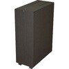 木目調のダストボックス。前後2枚構成の上蓋付き。手前側の蓋を後方にスライドさせると開閉できます。キャスターは底板部を少し上に上げて取り付けているので外からは見にくくなっています。内側には、ポリ袋を押さえるストッパーが付いているので、45リットル用のポリ袋を装着できます。20Lの袋なら、2つ付けて分別ゴミ箱にすることも可能。