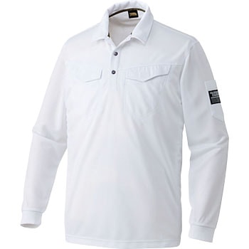 汗止めテープ(サテンプリント入り)、ロゴ刻印入りボタン、左右マジックテープ付胸ポケット、左袖ブランドルネーム付ペン差し、脇消臭テープ、袖口リブ仕様