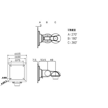 耐荷重は12Kg以内で、目安として20インチ前後の液晶モニタのマウントに適しています。