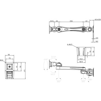 標準化されたパーツを組み合わせることにより、多くの取付アプリケーションに対応できる液晶モニタ用アームです。