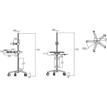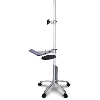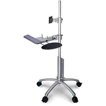 支柱スタンド用小型アームLA-QAシリーズおよびキーボードアームKA-01を取り付け、モニタ、マウス、キーボード、PC本体を設置し移動式のワークステーションにすることができます。