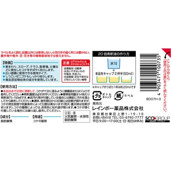 薄めて使用するタイプの、広くまけてお得なコケ駆除剤。家周り、駐車場などに発生したコケをすばやくしっかり枯らす。食品添加物由来の成分を使用。