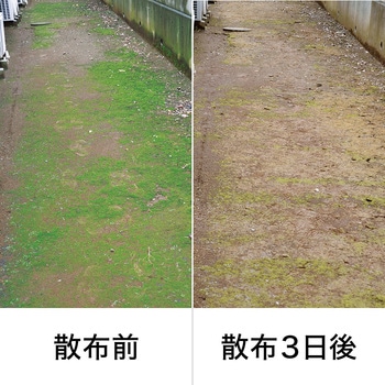 ガレージに出来たコケに散布2~3日後に見たら枯れていました。枯れても無くなるわけではありませんが効果ありです!