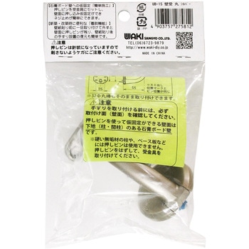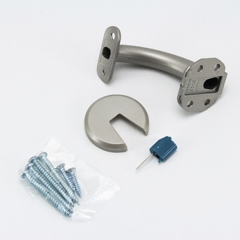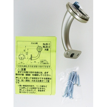 そのままで35Φ、32Φの丸棒に対応できる2サイズ兼用手すり金具。押しピンを受金具にセットし、壁面に押し込み仮固定ができネジ止めが簡単にできます。壁紙貼り前に一旦取りつけて外すと壁面に押しピンが残り、壁面貼り後の手すり設置の復元も簡単です。