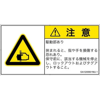 | 52284627 | GA1206701LJ-1 | 1シート(6枚) | 駆動部あり 挟まれると、指や手を損傷する恐れあり。 駆動部に指や手を入れないこと。 | 122×62 | 対象業界: 一般機械、半導体、対象者: オペレータ | | | |