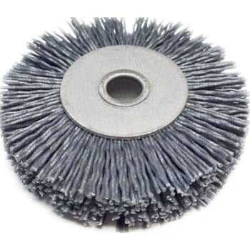 ブラシ材質に砥粒入りナイロン波付線Φ0.9(粒度#180)を使用。弾力性に富みブラシ先端及び側面でも研磨が可能(ワインピングアクション効果)。飛散が少なく安全性も抜群。