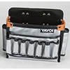 防水生地採用により、表面に付着した汚れの拭き取りが容易です。内部は樹脂板で補強してあるため、型崩れしにくくなっています。底板はマジックで固定できますので、中であばれません。両サイドのポケットは底が開いていますので、はさみが左右どちらにも収納できます。