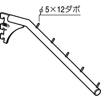 スリット穴掛け式棚等設置システム用基礎支柱に直接装着するタイプの、ハンガー陳列用フェイスパーツ(傾斜5連掛けタイプ)