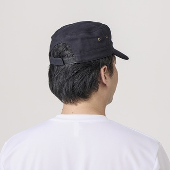 面ファスナー仕様のアジャスタ―で調整サイズ幅が広いワークキャップです。