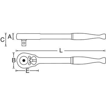 プッシュボタン付きスタンダードタイプ。ミラー仕上げのメッキが美しいラチェットハンドル。
