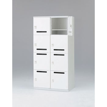 セキュリティに配慮した省スペース型の個人用ロッカー。8人用のパーソナルロッカー。オフィス空間にフィットするシンプルなデザインで、中間設置にも適しています。固定棚1枚付。ハンガーパイプ付。ダイヤル錠付、ダイヤル錠は固定方式と自由方式の切替が可能です。キーの持ち歩き不要のため、紛失を未然に防げます。