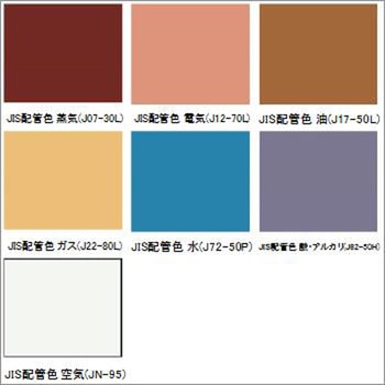 JIS(日本工業規格)にて工場内の配管内容を識別しやすいよう、区別された色です。配管系に設けたバルブの誤操作を防止するなど安全を図るよう配管を色にて識別表示します。配管色は日塗工の色番号で検索できます。塗料はフタル酸系速乾塗料です。