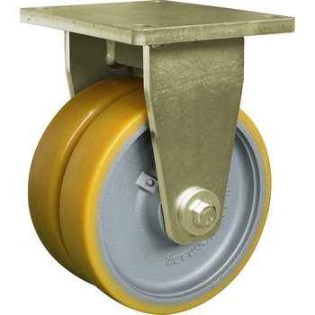 車輪は耐摩耗性・高弾性の高荷重ウレタンExtrathane <Blickle>ポリウレタンタイヤとキャストアイロン(鋳鉄)芯金の組み合せによる重荷重用車輪車輪には密封型ラジアルボールベアリングを使用―グリースの追加注入無しでも静かで滑らかな回転車輪に車軸用グリースニップル付自在・固定が同じ取付ピッチ