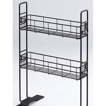 ベースが平らなので、冷ケースの足元に入り、冷ケースの壁面にカゴがぴったり設置できます。